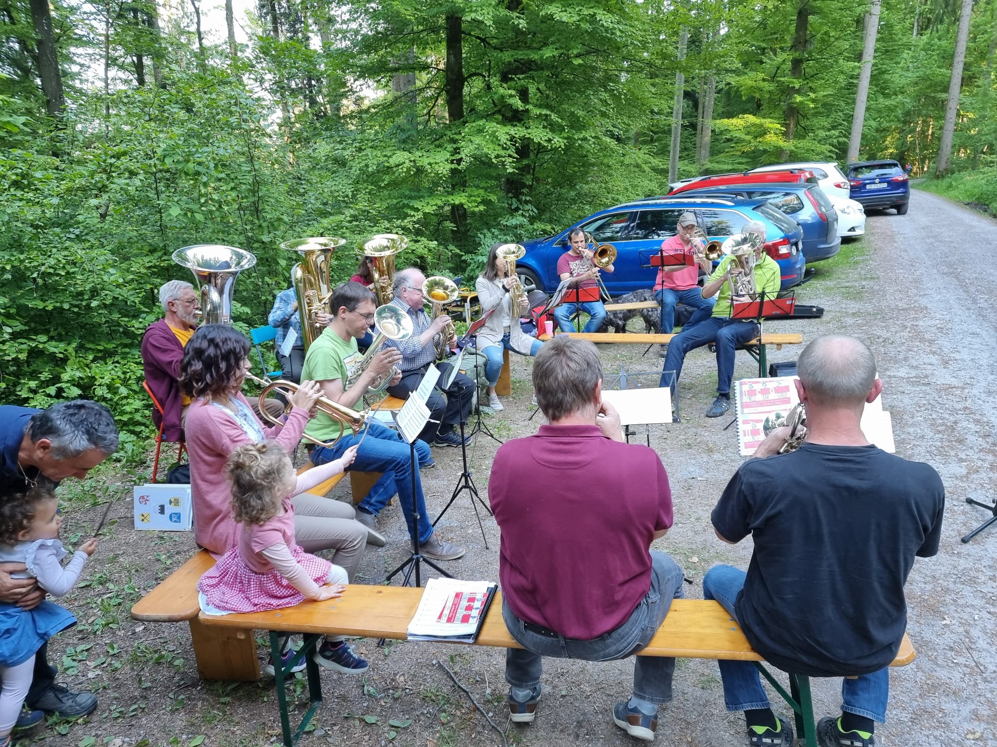 Not (bzw. Pandemie) verlangt nach neuen Ideen: Weil das Proben in Innenräumen nicht erlaubt war, verlegten wir die Probe zur Waldhütte ...