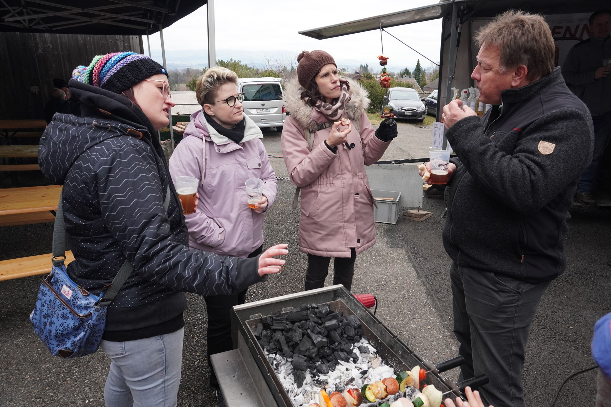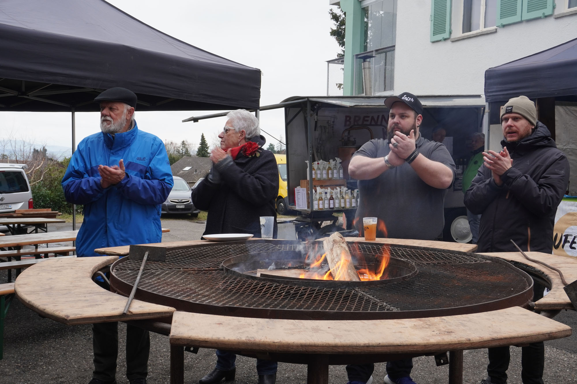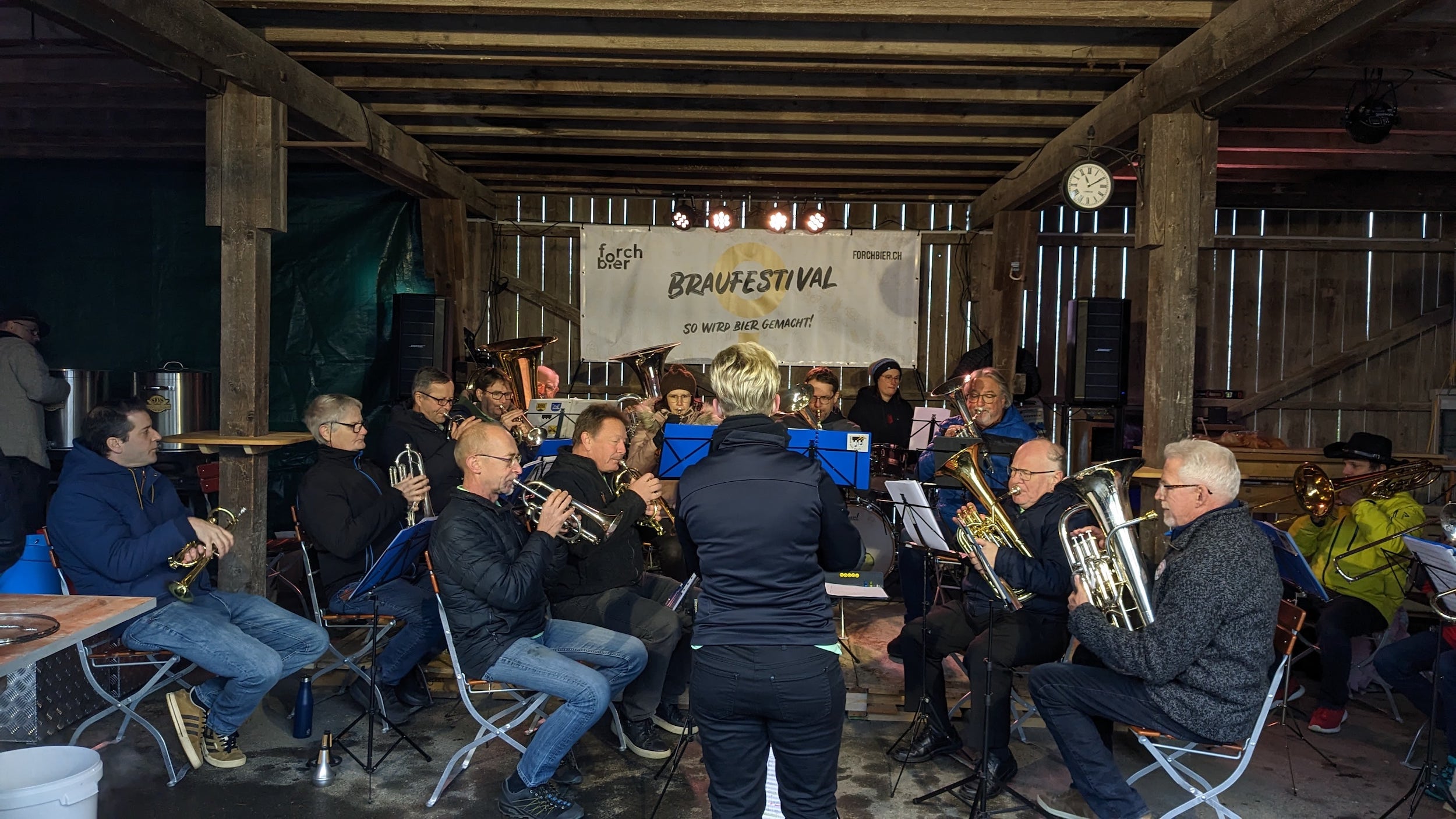 Trotz feucht-kaltem Wetter kam unser Auftritt am Braufestival auf der Forch gut an. Die kühle Witterung war vielleicht auch der Grund, weshalb sich das Publikum von unserer Dirigentin Stephanie animieren liess und zum Stück «Jerusalema» eifrig mitklatschte - und sogar noch eine Zugabe verlangte. Anschliessend gab es (natürlich) Bier und Wurst vom Grill!