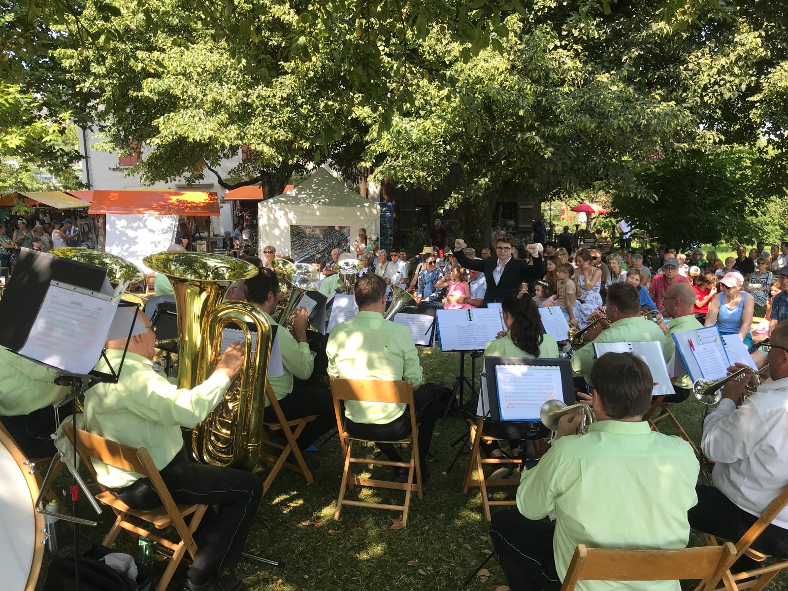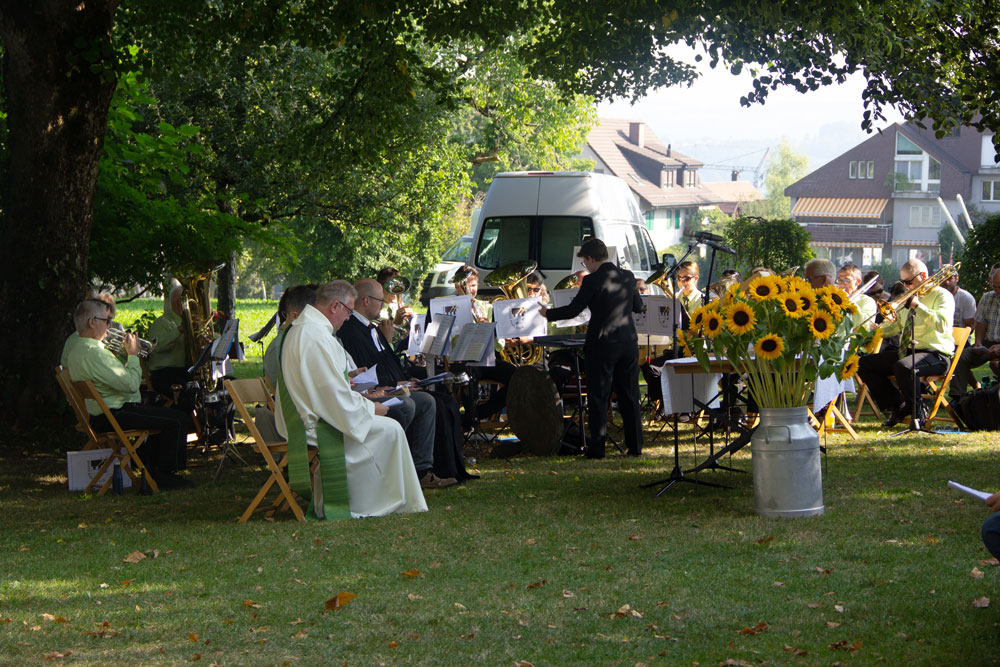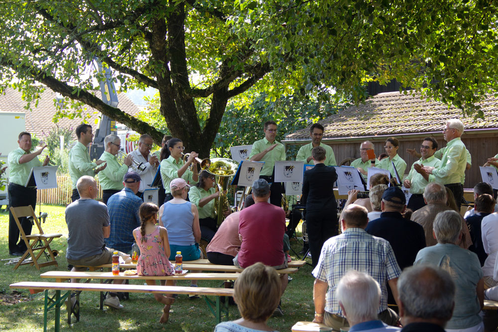 Wir umrahmten den oekumenischen Chilbi-Gottesdienst auf dem Burghof und spielten gleichenorts über Mittag zum Konzert auf. Dank schönstem (fast zu heissem) Wetter fanden sich zahlreiche Zuhörerinnen und Zuhörer auf dem Burghof ein und genossen den Schatten der grossen Linde.