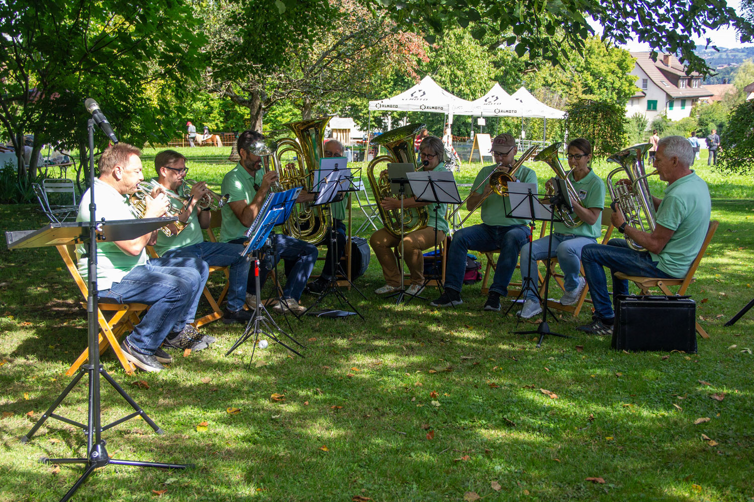 Am Samstag umrahmten wir in kleiner Besetzung die Begrüssung der Mauremer NeuzuzügerInnen. Am Sonntag umrahmten den oekumenischen Chilbi-Gottesdienst auf dem Burghof. Anschliessend spielten wir gleichenorts vor grossem Publikum zum Konzert auf.