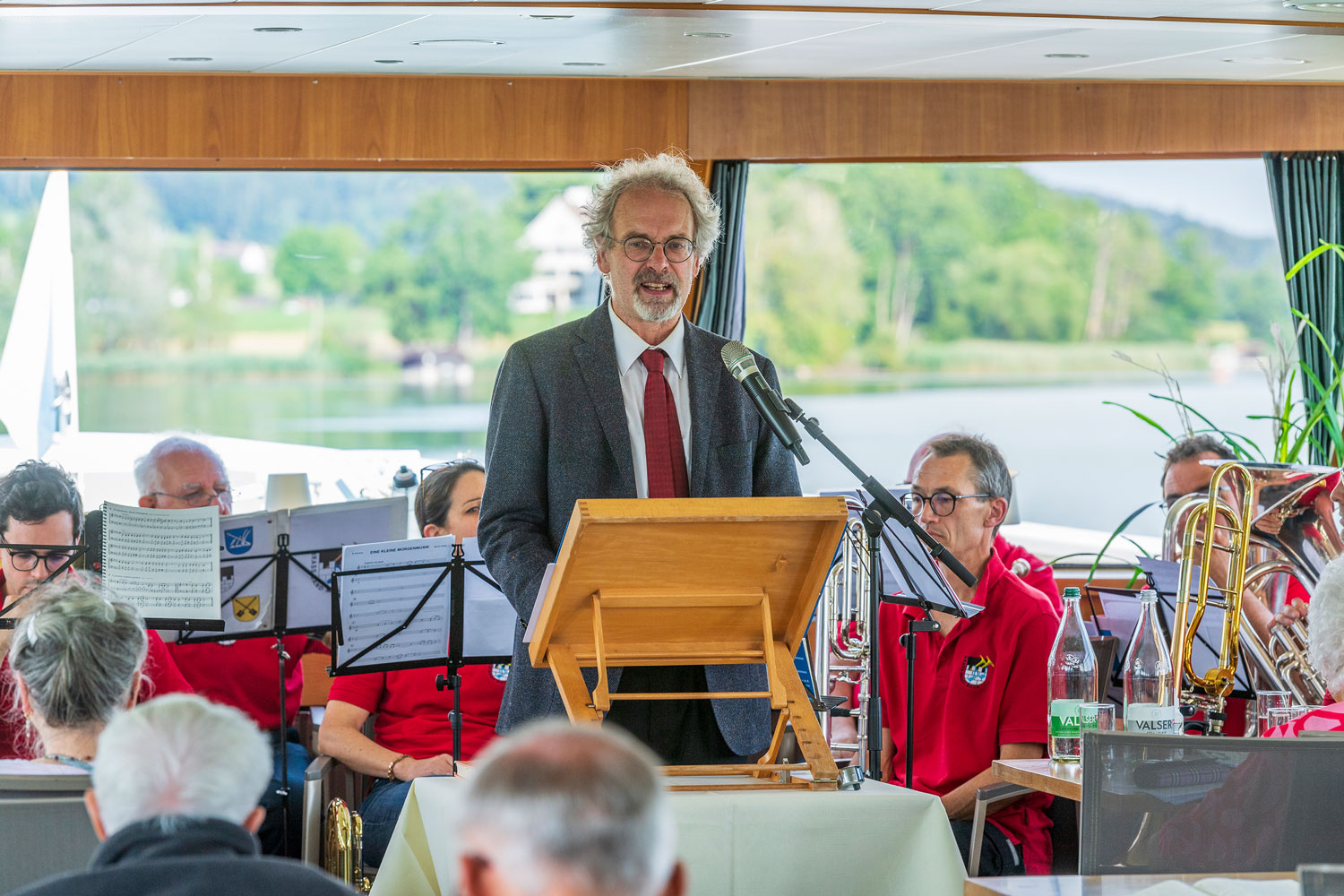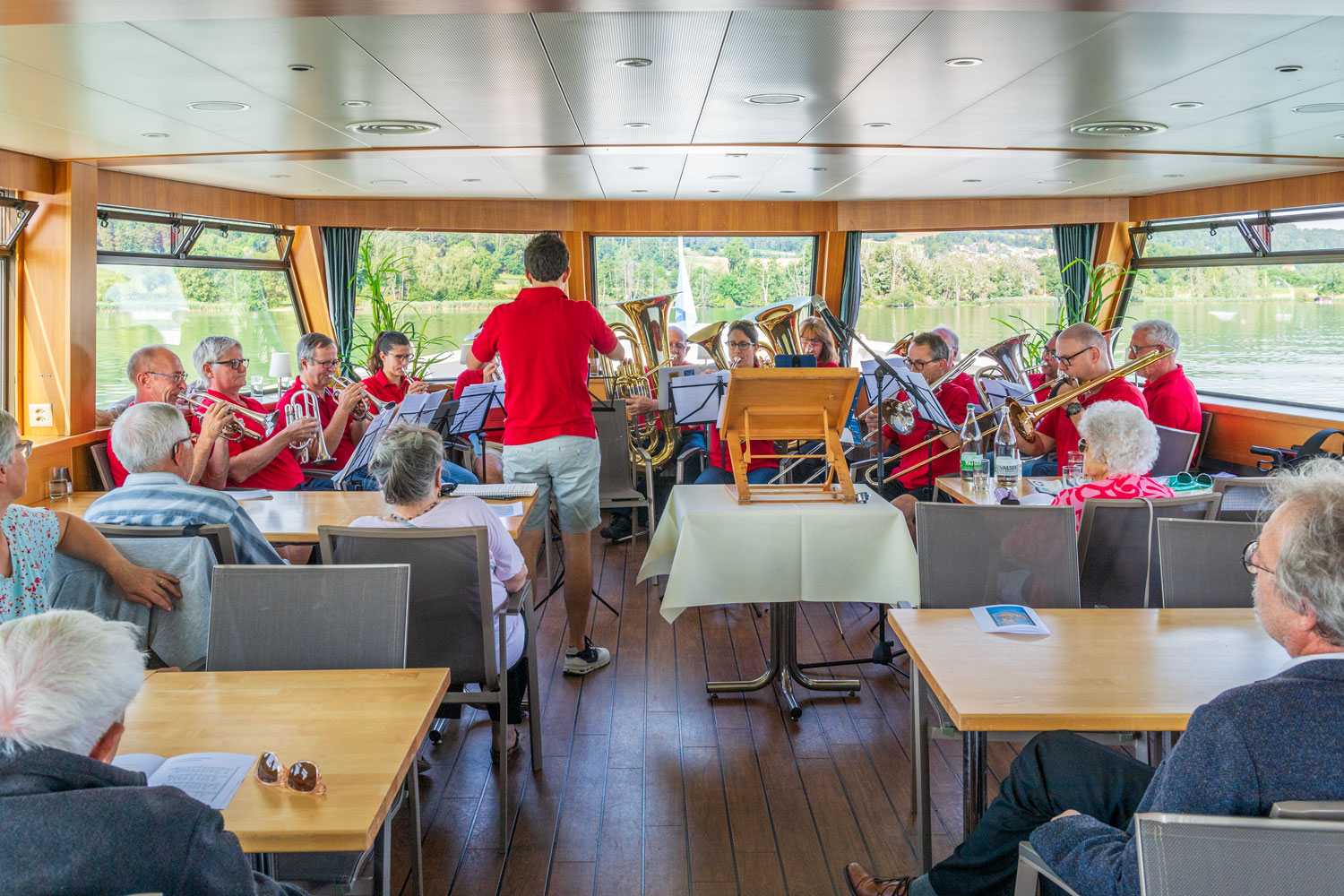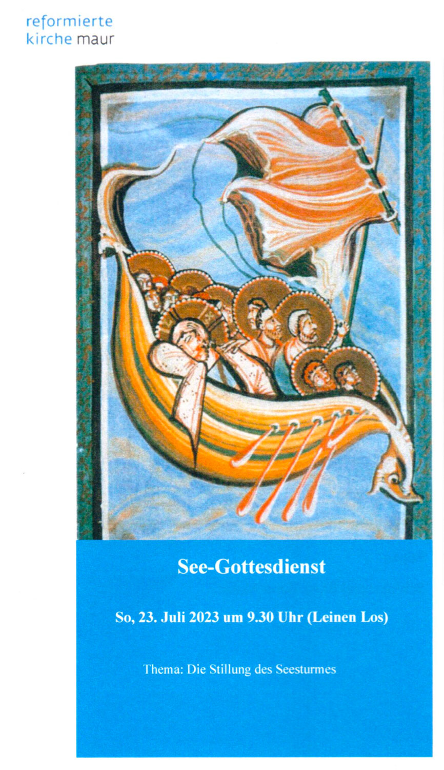 Einmal mehr umrahmten wir auf der Stadt Uster, dem grössten Kahn der Schifffahrtsgesellschaft Greifensee, den Gottesndienst der Kirche Maur. Pfarrer Wilheml Schlatter hatte mit «Die Stillung des Seesturmes» ein passendes Thema ausgewählt.