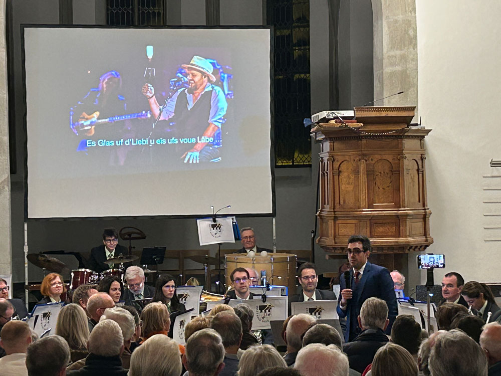 Das Programm bot einige Überraschungen: Zum ersten Mal trat unser Dirigent Flávio Barbosa mit der BB Maur als Solist auf. Mit seinem F-Horn spielte er «Gabriellas Song», die Titelmelodie aus dem Film «As it is in Heaven» und überzeugte das Publikum von seinem grossen Können.